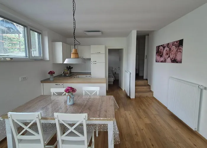 이 50m^2 아파트는 류블랴나요제푸치니크 공항에서 40km 떨어져 있습니다. 손님들이 테라스에서 음료를 즐길 수 있으며 식사를 할 수 있습니다.